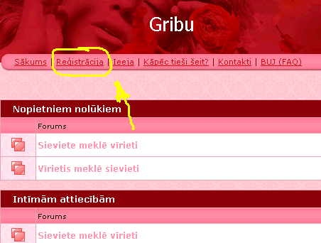 Klikšķini uz saites "Reģistrācija", kas redzama ekrāna augšdaļā (sk. attēlu).
